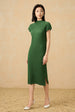 Bring a touch of timeless elegance into your pre-autumn wardrobe with this pleated cheongsam-inspired dress and short jacket set. The semi-high neckline adds a refined retro charm, while the pleated fabric brings lightness and movement to the overall design. Paired with a cropped jacket, it balances traditional Chinese style with a modern silhouette, making it both unique and versatile.