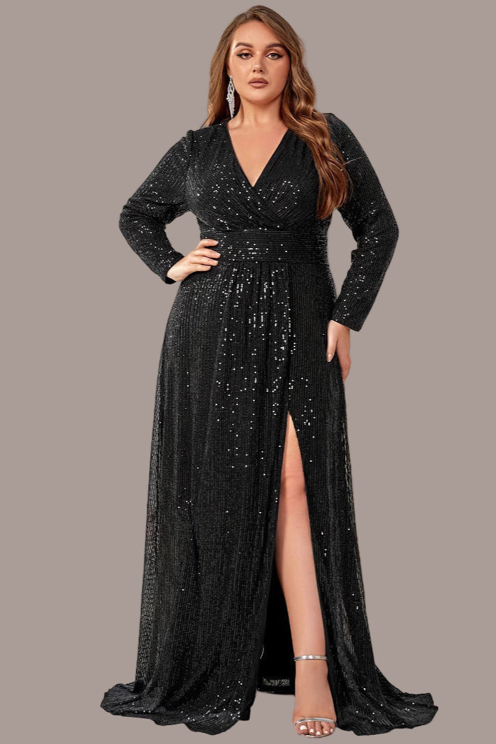 Rechiely Collection – Sparkle with elegance in this plus-size sequin evening dress. Designed with a light luxury style, it balances glamour and sophistication for any formal occasion. The shimmering sequin fabric catches the light beautifully, while the elegant silhouette ensures comfort and confidence. Perfect for weddings, parties, proms, and evening banquets, this gown is made to make every moment unforgettable.