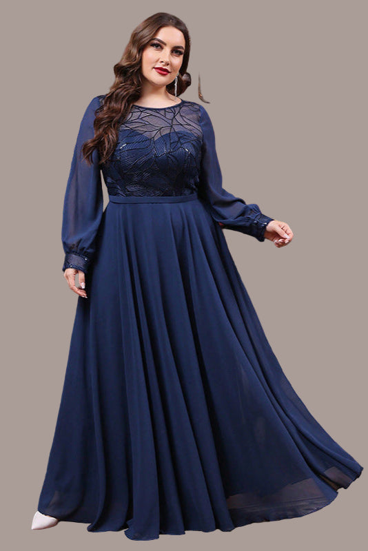 Rechiely Collection presents an elegant plus-size lace evening dress that combines timeless beauty with modern sophistication.