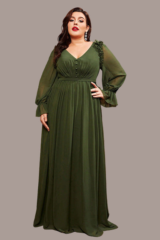 Crafted for plus-size women, this evening gown is ideal for banquets, weddings, evening parties, formal gatherings, and special events. The rich green tone conveys both freshness and nobility, ensuring you look stunning in every spotlight.