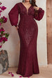 Rechiely Collection – Shine with elegance in this plus-size sequin beaded evening dress. Designed with a flattering V-neckline and long sleeves, it balances glamour and comfort. The gown sparkles with sequins and delicate beadwork, while the mermaid silhouette hugs your curves and flows gracefully to the floor. Perfect for proms, weddings, galas, and evening parties, this dress is made to make you feel confident and unforgettable.